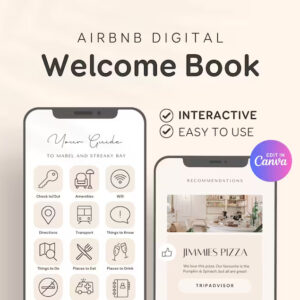 Modern Digital Welcome Book Airbnb Canva, Mobile Digital Welcome Guide Template for Cottage, Cabin, Beach House Manual, Vacation Rental EG02