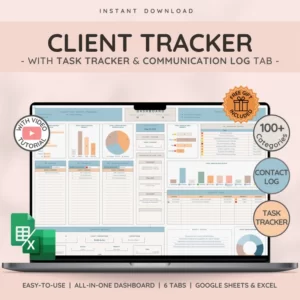 Client & Task Tracker Small Business Spreadsheet Template for Client Management w/ Task Tracker and Communication Log for Google Sheets