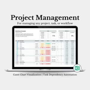 Project Management, Gantt Chart, Time Management, Project Manager, Task Tracker, Project Planner, Excel Template, Productivity Planner