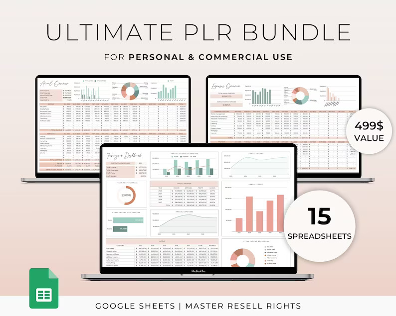 ✔︎ 15 PLR spreadsheets (90+ tabs in total)