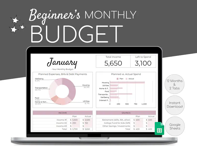 This Beginner’s Monthly Budget Spreadsheet makes keeping track of your income and expenses easy.